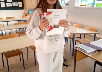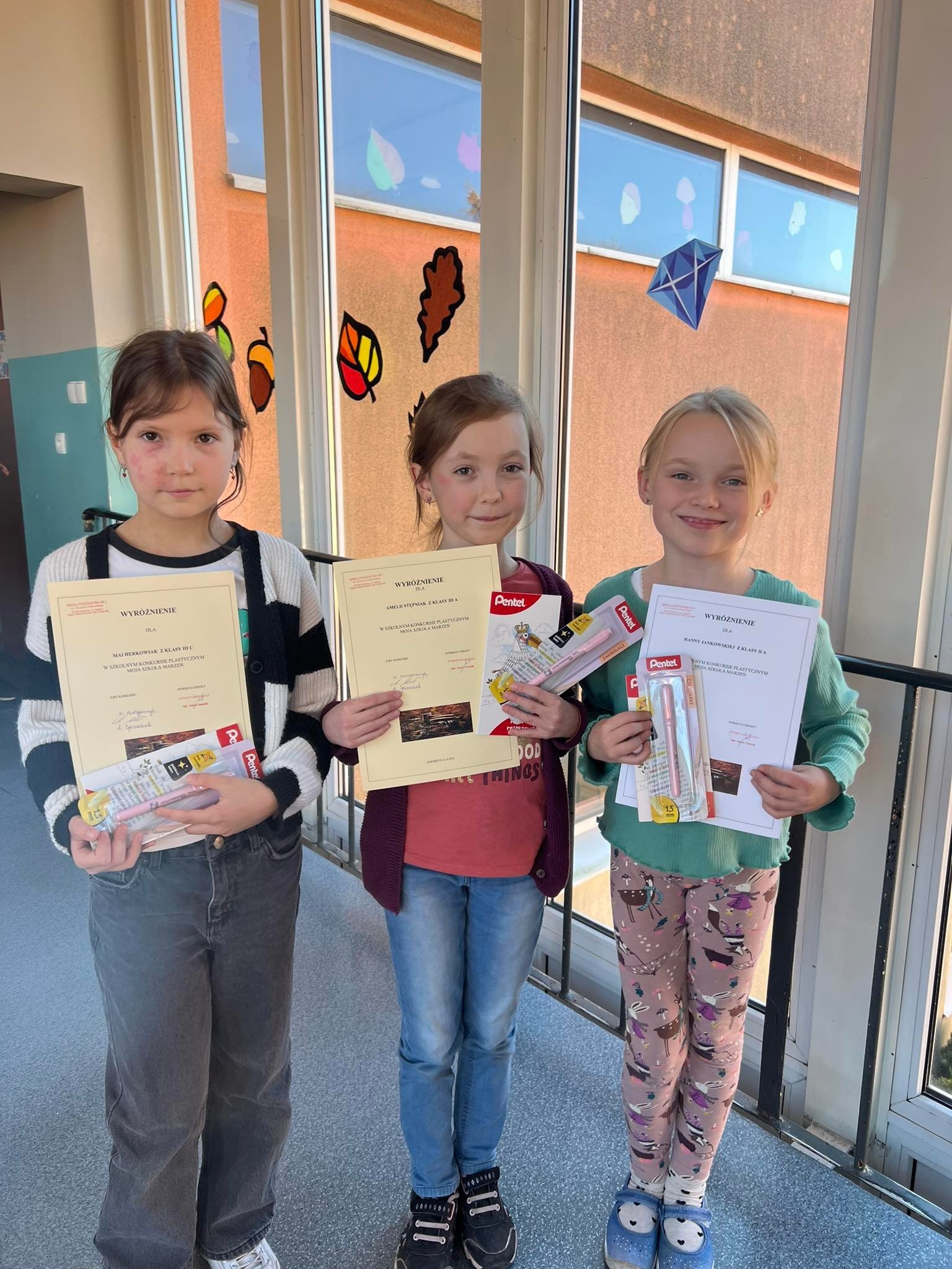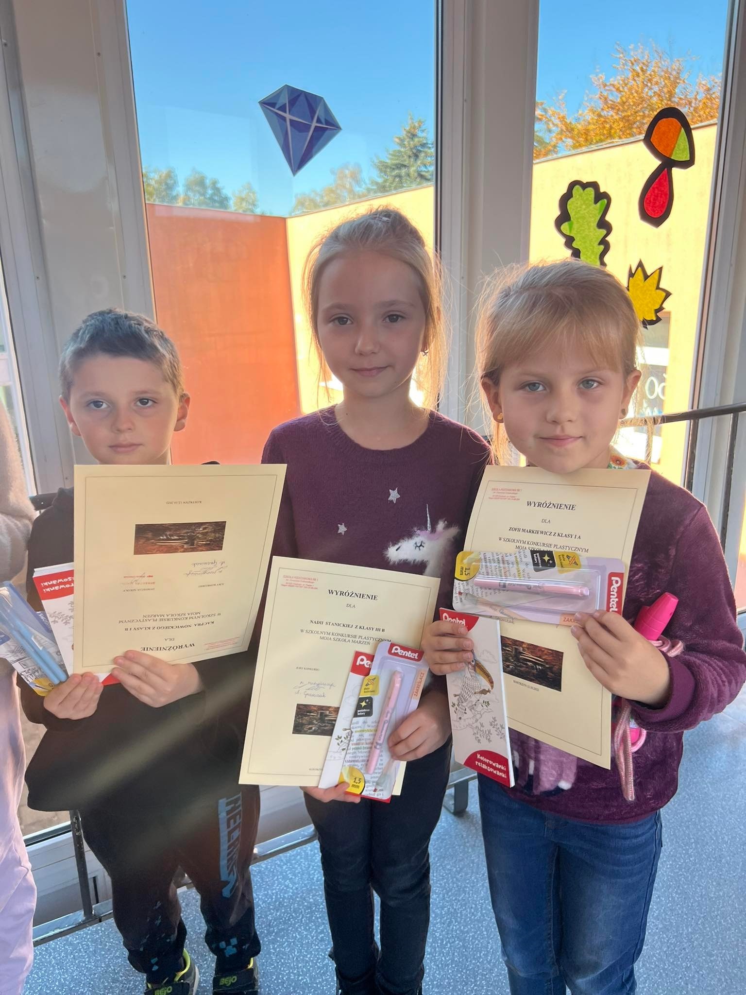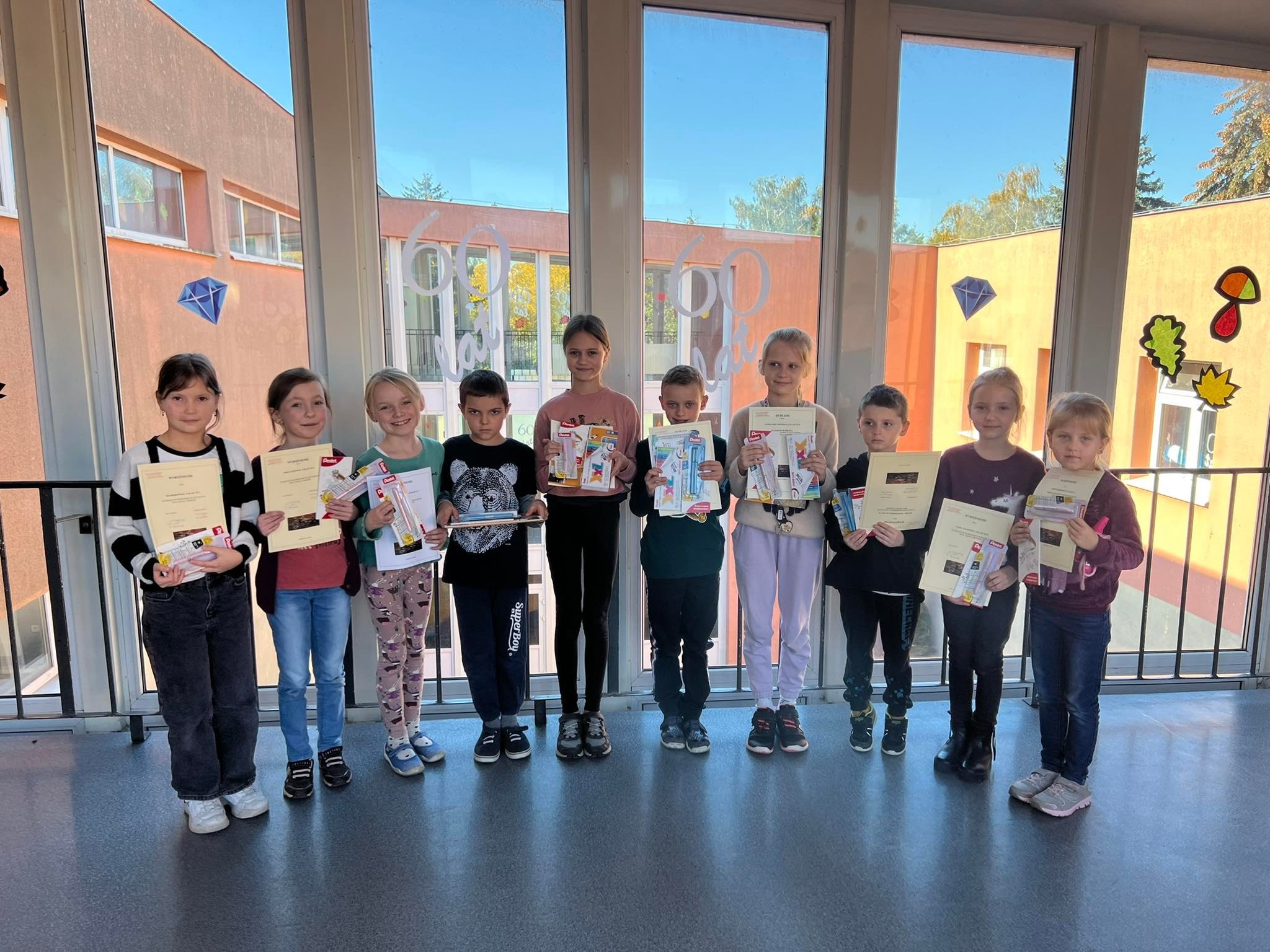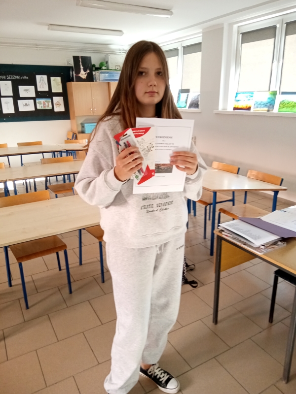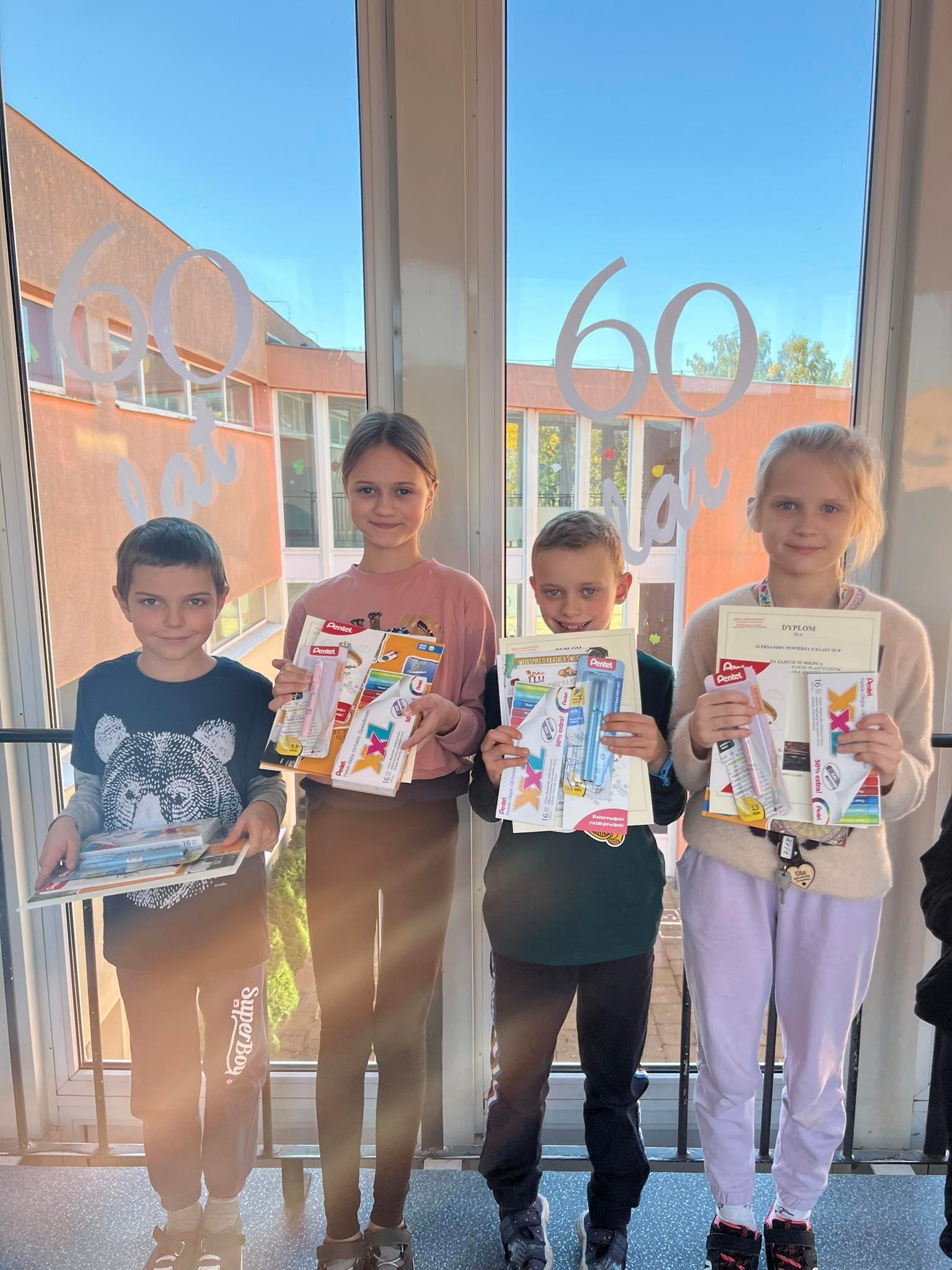 Dnia 20 października 2022 roku nastąpiło uroczyste wręczenie nagród uczniom biorącym udział w konkursie pt.,,Szkoła moich marzeń” zorganizowanym z okazji 60-lecia istnienia naszej szkoły. Konkurs wzbudził ogromne zainteresowanie. Do organizatorów wpłynęło ponad 100 prac. Twórczość naszych uczniów, jak zawsze, nas nie zawiodła. Prace były zarówno w formacie płaskim, jak i przestrzennym. Nagrody zostały przyznane w dwóch kategoriach. W klasach 1-3 I miejsce zajęła Maria Migdalska IIIc; II miejsce Krzysztof Adamski IIa, III miejsce Aleksandra Powierza IIIb, egz III miejsce Mikołaj Mielcarek IIa. Natomiast wyróżnienia otrzymali: Maja Herkowiak IIIc, Zofia Markiweicz Ia, Nadia Stanicka IIIb, Kacper Nowicki Ib, Amelia Stępniak IIIa, Hanna Jankowska IIa. W kategorii klas 4-8 I miejsce zajął Kacper Dykban 8f, II miejsce Amelia Sobkowiak 8d, III miejsce Julita Nowicka 4b. Wyróżnienia w tej kategorii wiekowej uzyskali: Kacper Łeszyk 4a, Hanna Cieluch 4d, Dobrasiak Amelia 4d, Julia Niemyt 5d, Salomon Maja 5d, Wrzyszcz Tymoteusz 5d, Begier Gabriela 6c, Budziałowska Żaneta 8c, Różańska Alicja 8c, Dobrogojska Zuzanna 8c, Jędraszyk Jessica 8h. Wszystkim biorącym udział serdecznie dziękujemy, a wygranym i wyróżnionym gratulujemy.