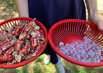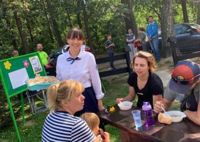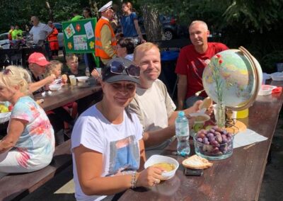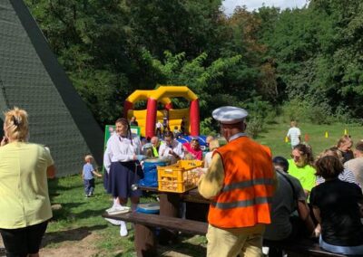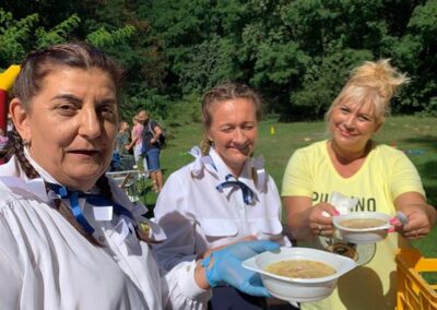 Grono pedagogiczne zapewniło przybyłym do Drzązgowa szereg atrakcji. Na każdego czekała pyszna grochówka przygotowana przez panie kucharki. Można było również skonsumować kiełbaskę usmażoną w ognisku. Zajadając się słodkościami przygotowanymi przez rodziców, uczestnicy rajdu wspominali szkolne lata. Najmłodsi uczestnicy wyprawy brali udział w grach i zabawach przygotowanych przez szkolnych aktywistów, natomiast ich rodzice i opiekunowie mogli wziąć udział w konkursie wiedzy o kostrzyńskiej jedynce.