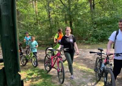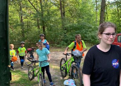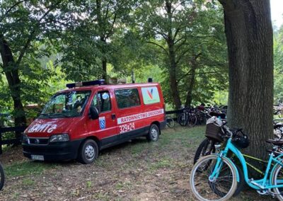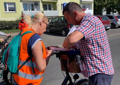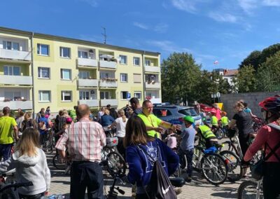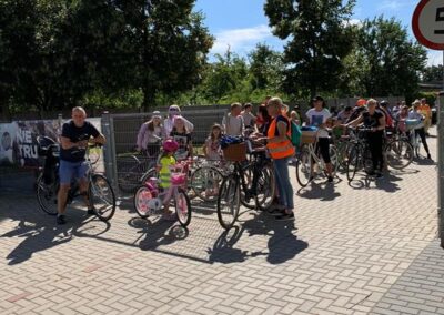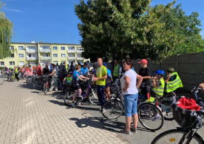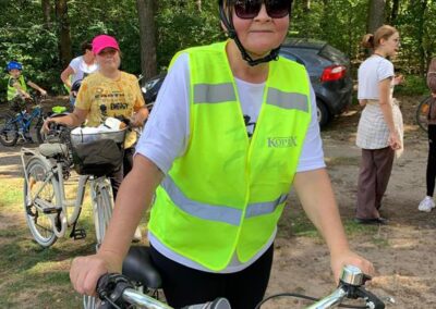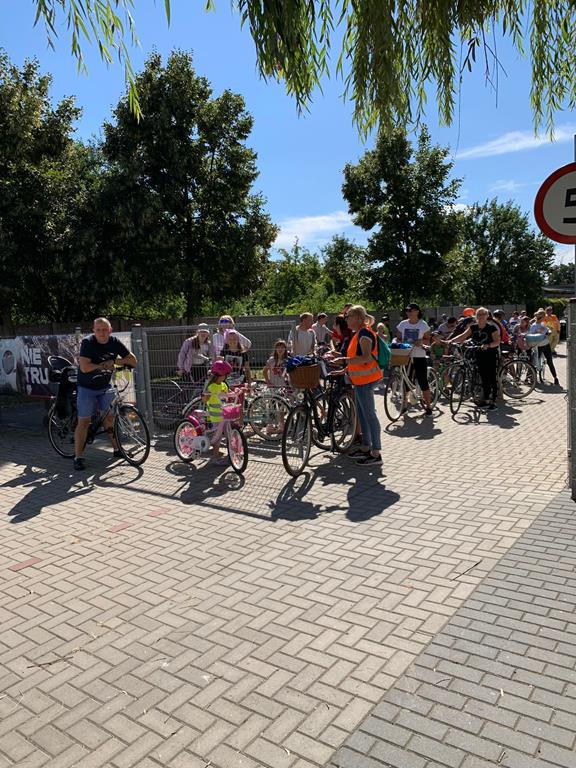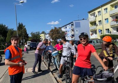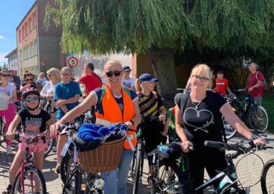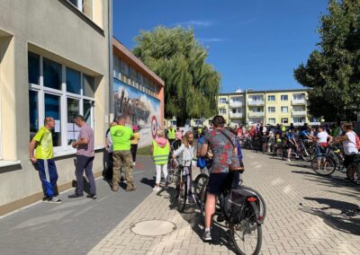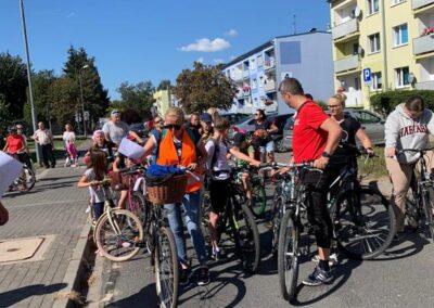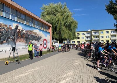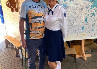 Sobotni czyn społeczny został podjęty z okazji 60 -lecia Szkoły Podstawowej nr 1 im. Ewarysta Estkowskiego w Kostrzynie. Głównym frontem robót było zorganizowanie rajdu rowerowego, który ruszył ze szkolnego boiska do wigwamu w Drzązgowie. Po godzinie pierwsi uczestnicy zjawili się na leśnej polanie, by tam zobaczyć… samego Ewarysta Estkowskiego, czyli pana Piotra Smolińskiego ucharakteryzowanego na patrona. Trudu przygotowania rowerowej wyprawy podjęła się kadra pedagogiczna naszej szacownej jubilatki. Na strudzonych cyklistów czekało 11 nauczycielek wystylizowanych na uczennice, ubranych w stylonowe białe bluzki i granatowe spódniczki wyprodukowane przez łódzkie włókniarki. Nad bezpieczeństwem uczestników rajdu czuwali miejscowi policjanci i strażacy oraz kierowcy quadów.