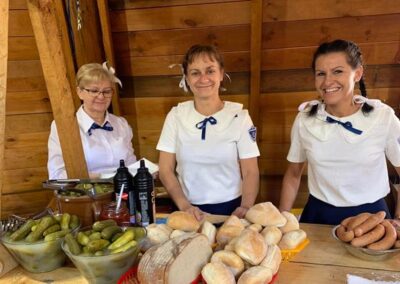 Po uroczystości można było powspominać stare czasy przy słodkim poczęstunku.  Dla zwiedzających wystawy tematyczne były przygotowane kartki z kalendarza, przedstawiające ważne daty w życiu szkoły. Zaproszeni goście mogli podziwiać prace plastyczne naszych uczniów oraz wystawy tematyczne. Był stare kroniki i zdjęcia, wystawa poświęcona wymianie polsko – niemieckiej, jasełkom, wychowaniu komunikacyjnemu, zaprezentowano również osiągnięcia sportowe.